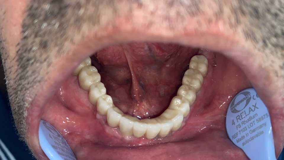 Pacientul Nicu D., în vârstă de 50 de ani, s-a prezentat în cabinet cu o edentație totală mandibulară în urma unei boli parodontale.